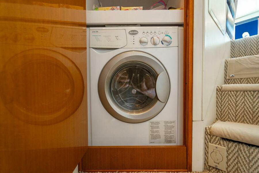 Additional equipment includes a Splendide washer/dryer, four Cruisair air conditioning units (Salon replaced in 2023), and a 20kw Onan generator with approximately 5,893 hours. The vessel has a fuel capacity of 1,250 gallons in two tanks and a freshwater capacity of 250 gallons. With an overall length of 55 feet 10 inches, a beam of 17 feet 4 inches, and a draft of 4 feet 10 inches, this yacht is Bahamas duty-paid.
